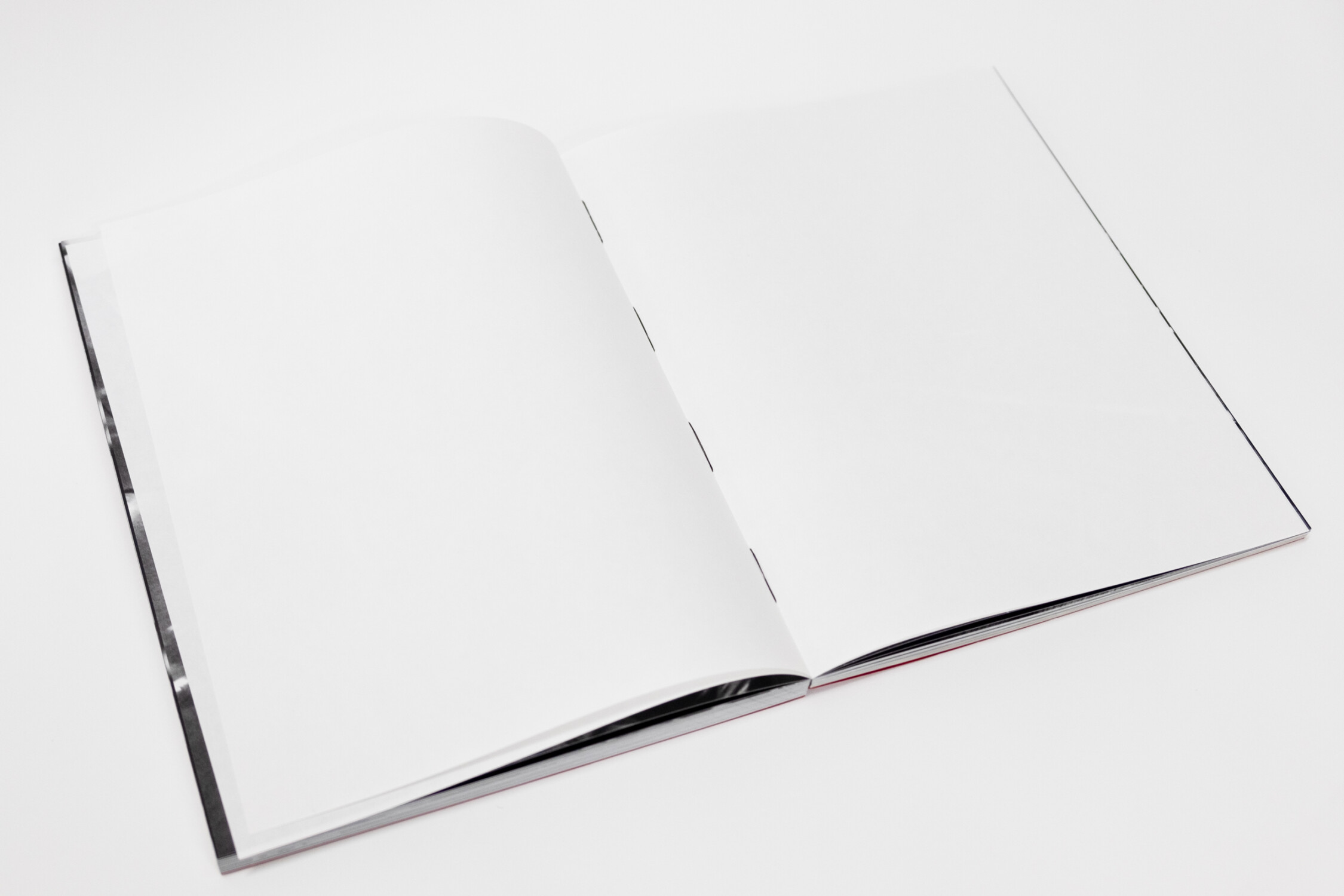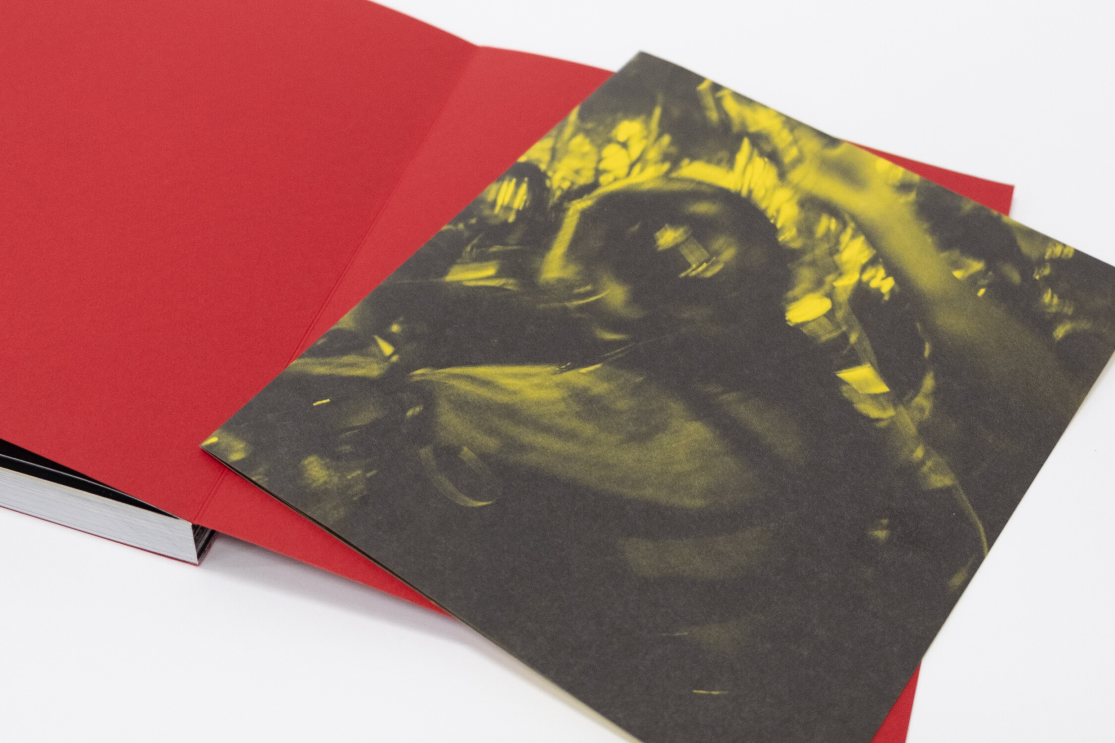 見返しの赤紙の存在感も強い。「表紙がないので、折って1折目を貼り付けてV字になっています。コデックスにすると通常表紙は少し分厚くなるのですが、薄い紙で成立させたのは、このV字に貼り付けたためです」。